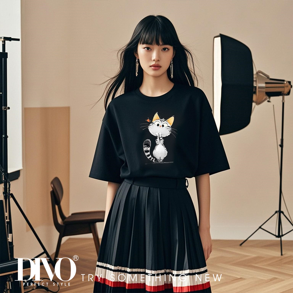 Với thiết kế đáng yêu nhưng không kém phần độc đáo, chiếc áo thun hình mèo này rất dễ dàng phối đồ. Bạn có thể kết hợp nó với quần jeans, chân váy denim để tạo nên vẻ ngoài năng động, trẻ trung. Hoặc đơn giản là mix cùng quần short và một đôi sneaker để có một outfit hoàn hảo cho những buổi đi chơi cuối tuần. Chiếc áo này sẽ giúp bạn kiến tạo dấu ấn riêng và thể hiện cá tính một cách ngọt ngào, độc đáo.